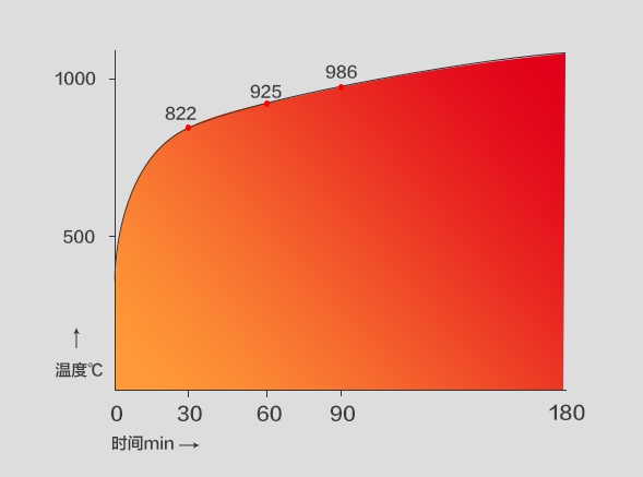 火灾时温度上升非常快(5分钟上升到~550℃),上升到1000℃。