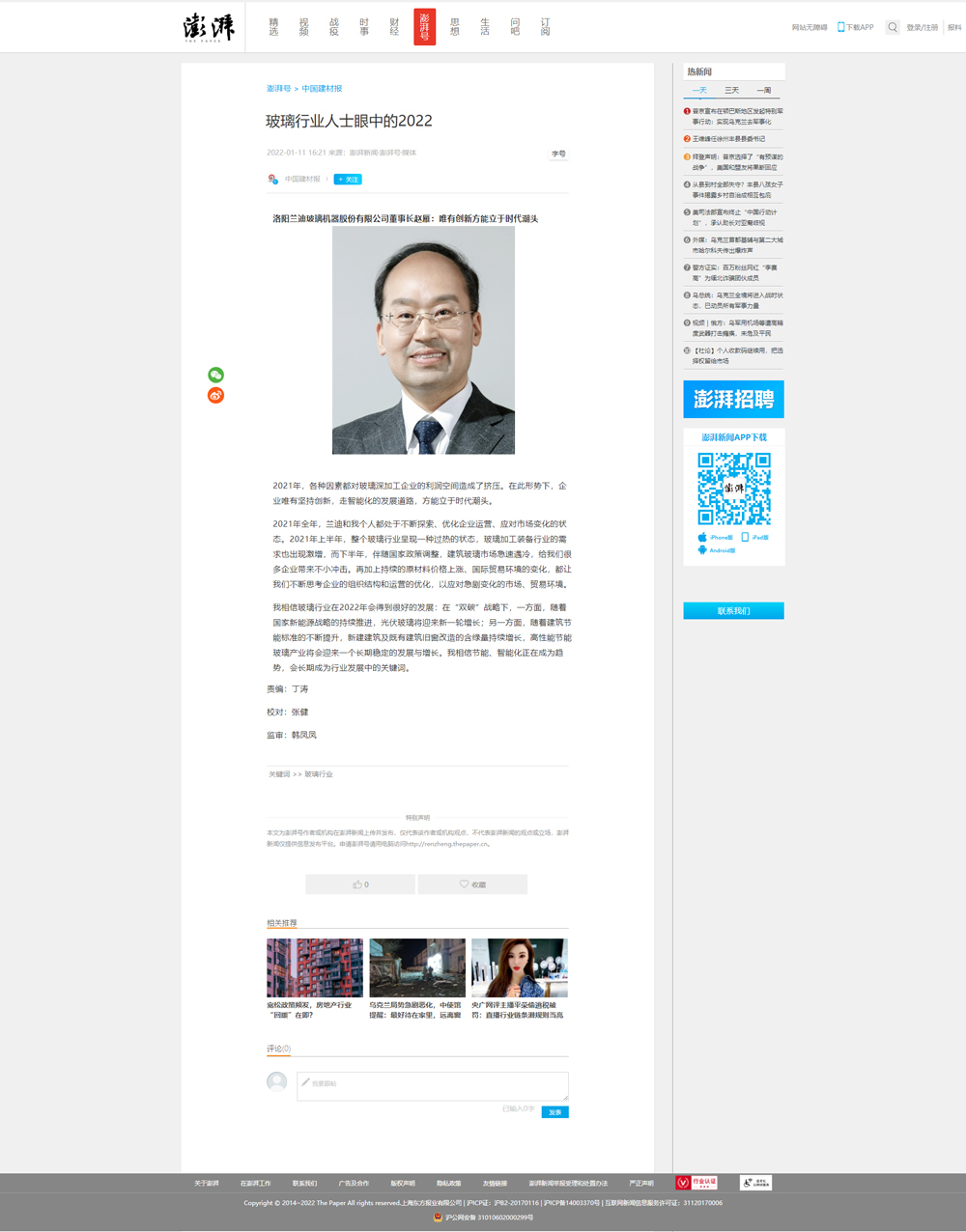 澎湃新闻:《玻璃行业人士眼中的2022》